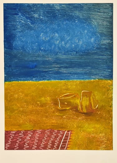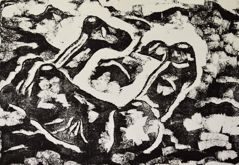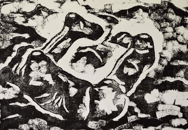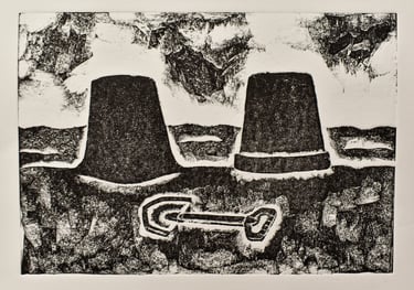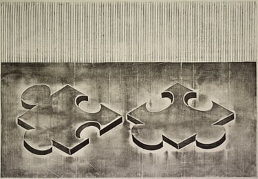 In questa serie di opere, utilizzo la tecnica dell’incisione e della stampa per rappresentare l’eco del passato che continua a vibrare nel presente attraverso l’apparizione, e poi riproduzione, di immagini che sono vestigia, testimonianze e tracce materiali, di ricordi che mi sono cari e risuonano in me.