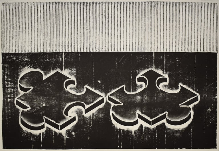 Gli oggetti - i puzzle, la pala e la sabbia - evocano l’infanzia, vissuti lontani ma incisi nel profondo. I puzzle rappresentano la costruzione dell’identità, l’ambivalenza del ricordo, in cui l’immagine nitida svanisce e quella sfocata, paradossalmente, appare vera. La pala e la sabbia richiamano il gioco, lo scorrere del tempo e il passaggio dall’infanzia all’età adulta, come castelli destinati a sovrapporsi e a dissolversi.