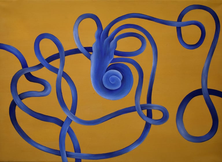 Tra visioni reali, immaginarie e simboliche, parti anatomiche e tecniche, artefatti, queste rappresentazione e riflessioni sull’apparato cocleare trattano della vita e del sentire uditivo con tre possibilità esistenziali: essere udente, essere sordo senza recupero, essere sordo con recupero uditivo attraverso protesi acustiche o impianti cocleari.
