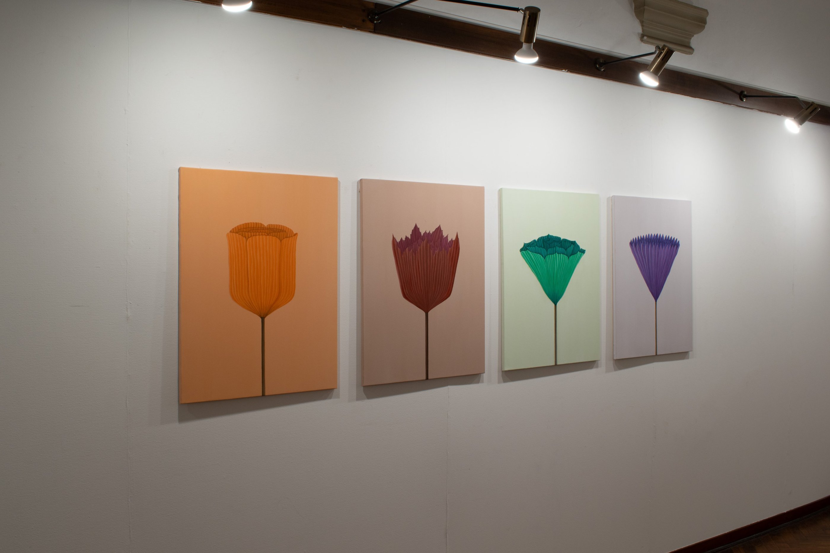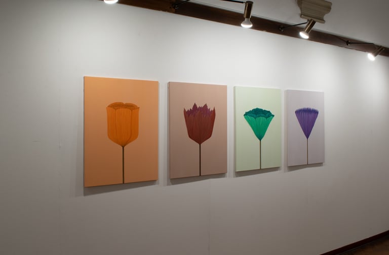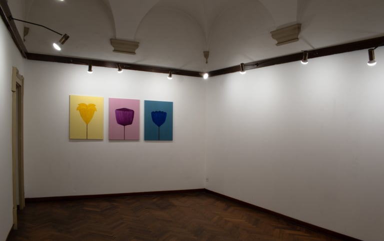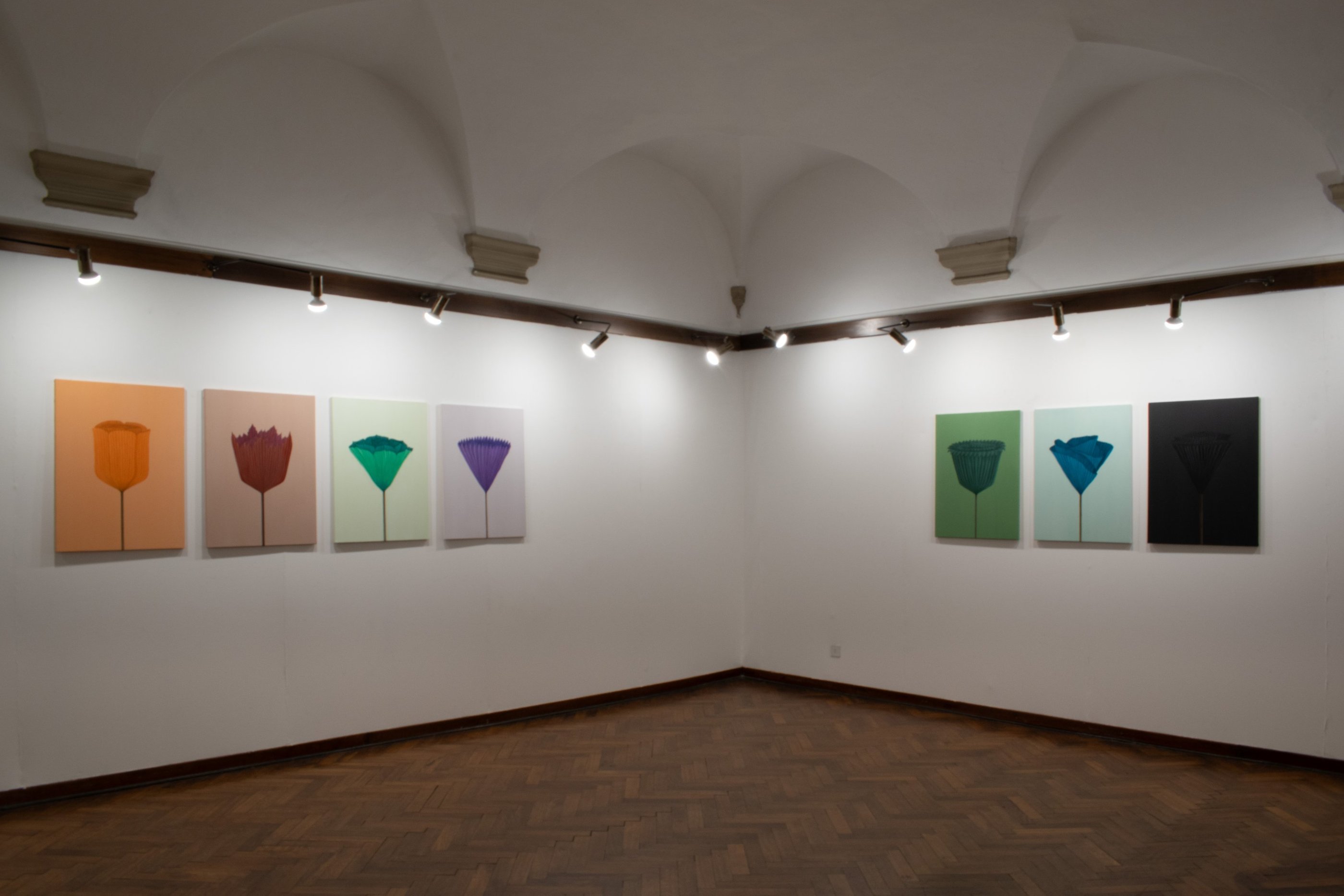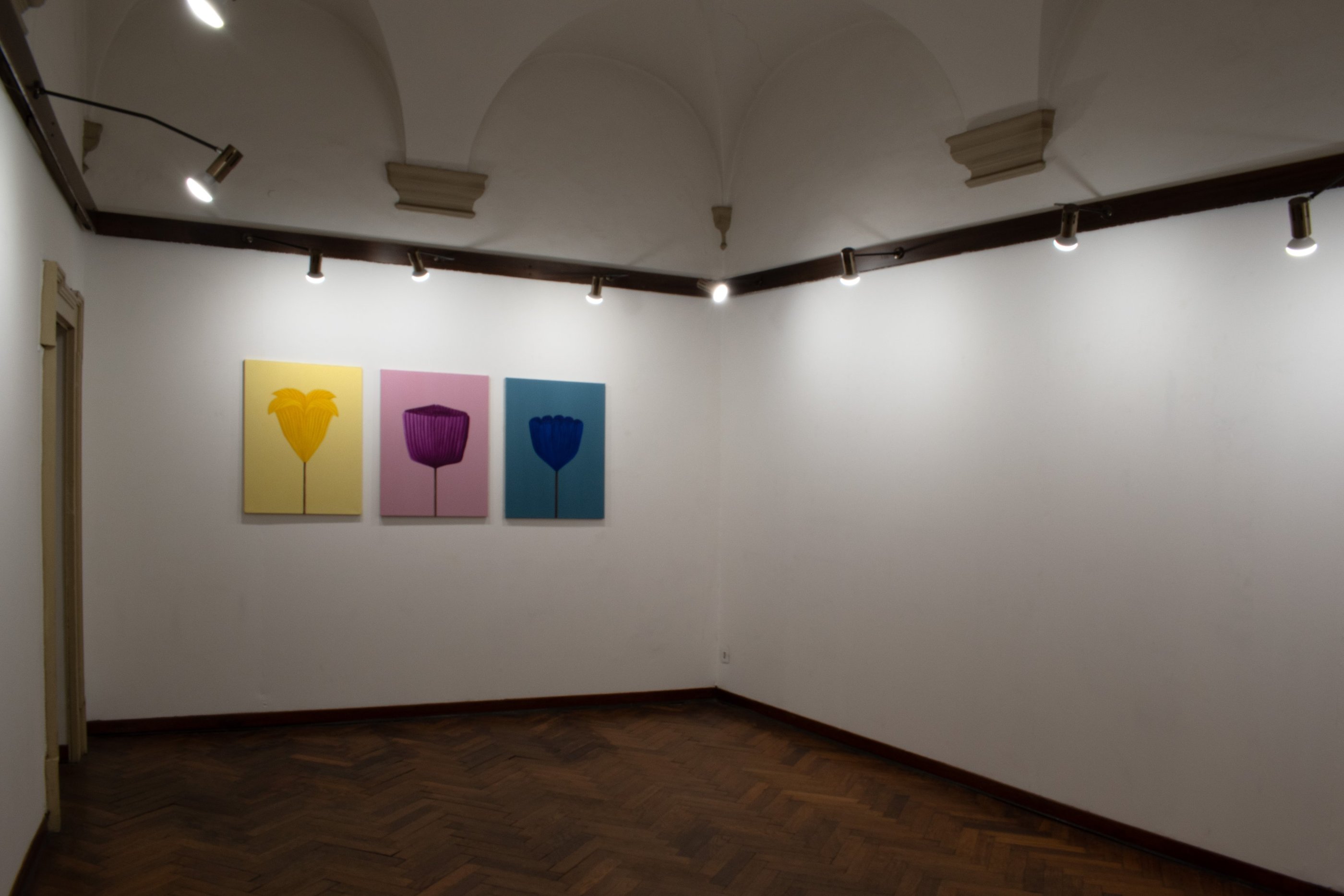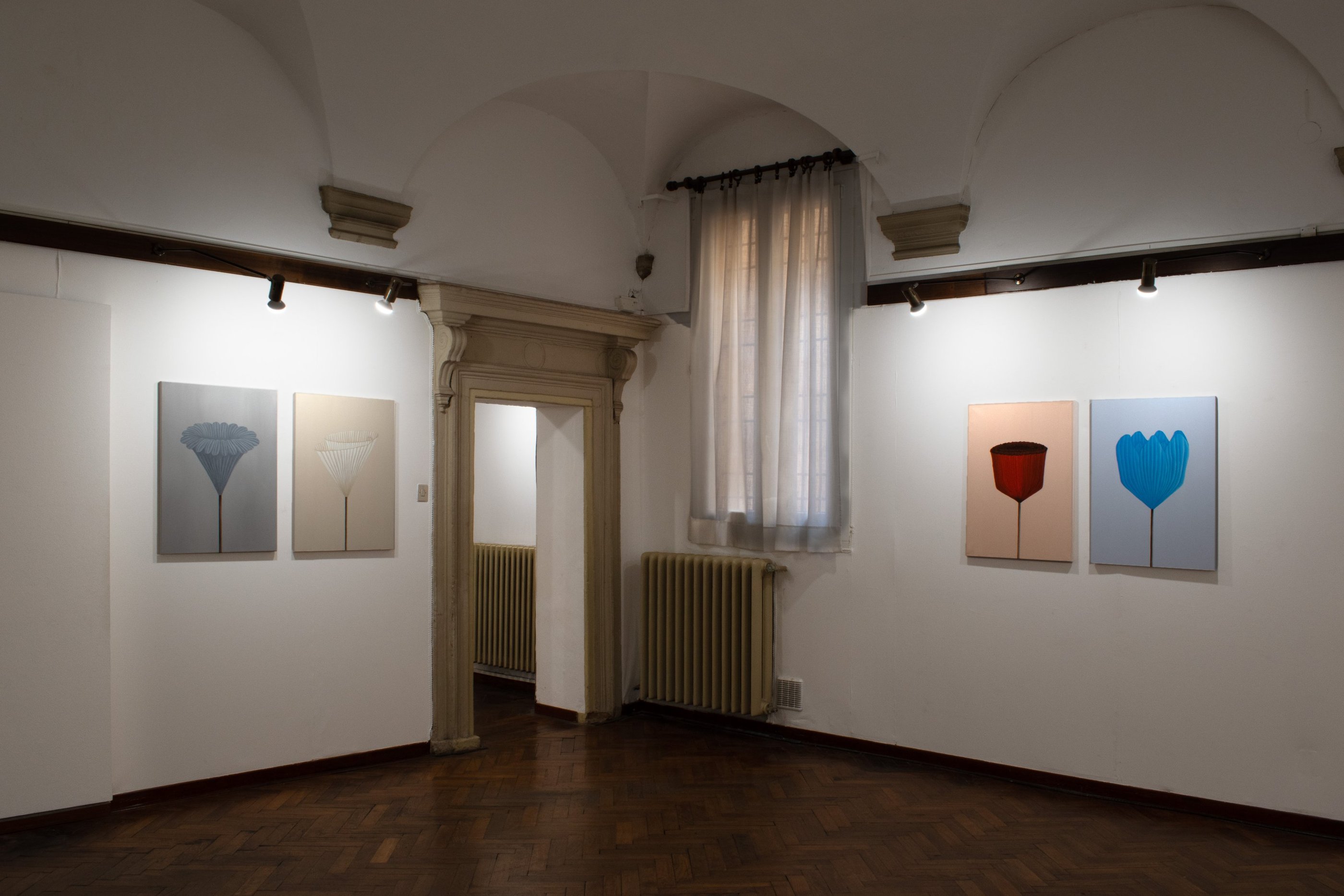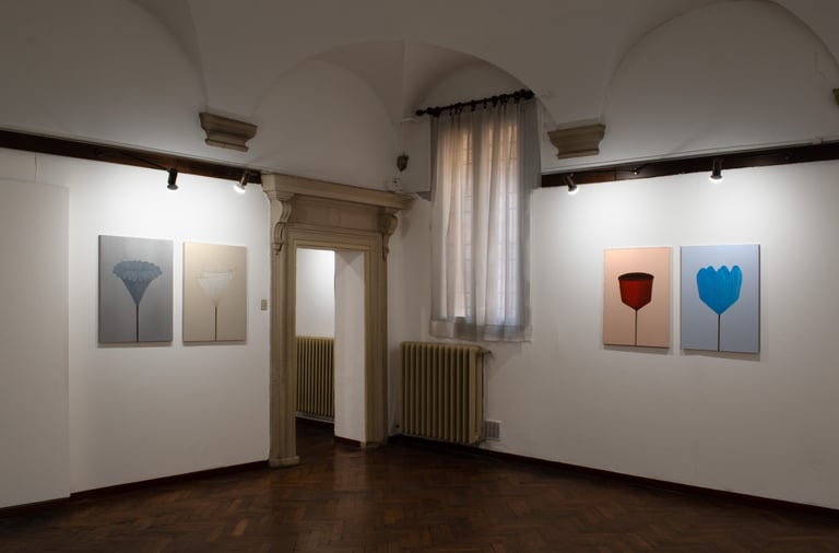 Fiori di carta, vi ho scelto dal passato: ho dipinto effigi di giochi e ricordi ... rappresentazioni monocromatiche di memorie evocate, immagini-sintesi di esperienze reali che invitano chi le guarda a riflettere sull’intreccio tra vita e arte.