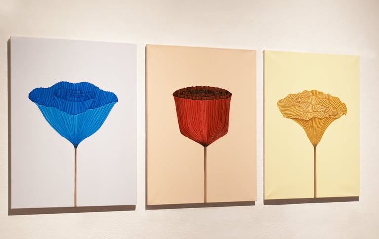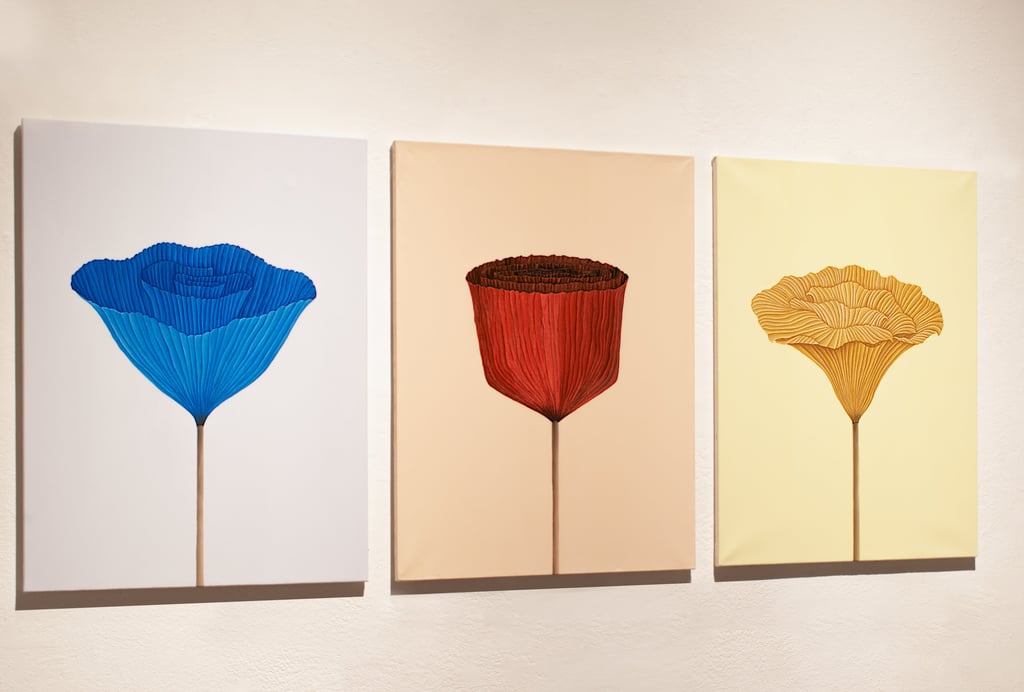 Fiori di carta, vi ho scelto dal passato: ho dipinto effigi di giochi e ricordi … rappresentazioni monocromatiche di memorie evocate, immagini-sintesi di esperienze reali che invitano chi le guarda a riflettere sull’intreccio tra vita e arte.