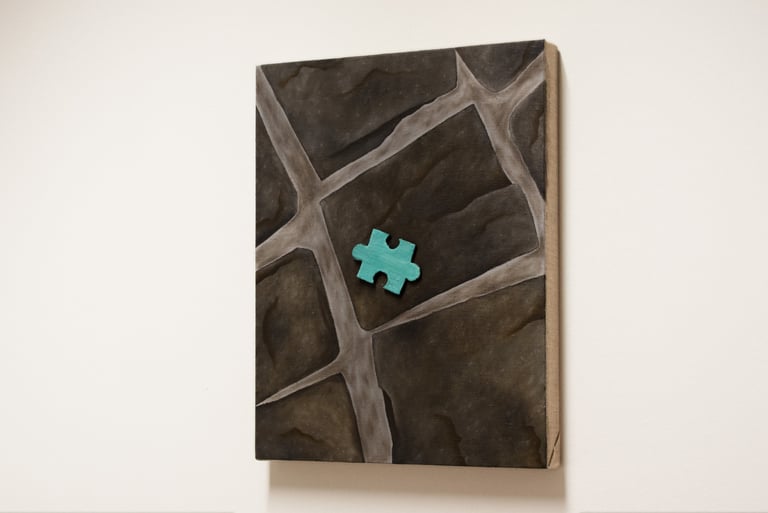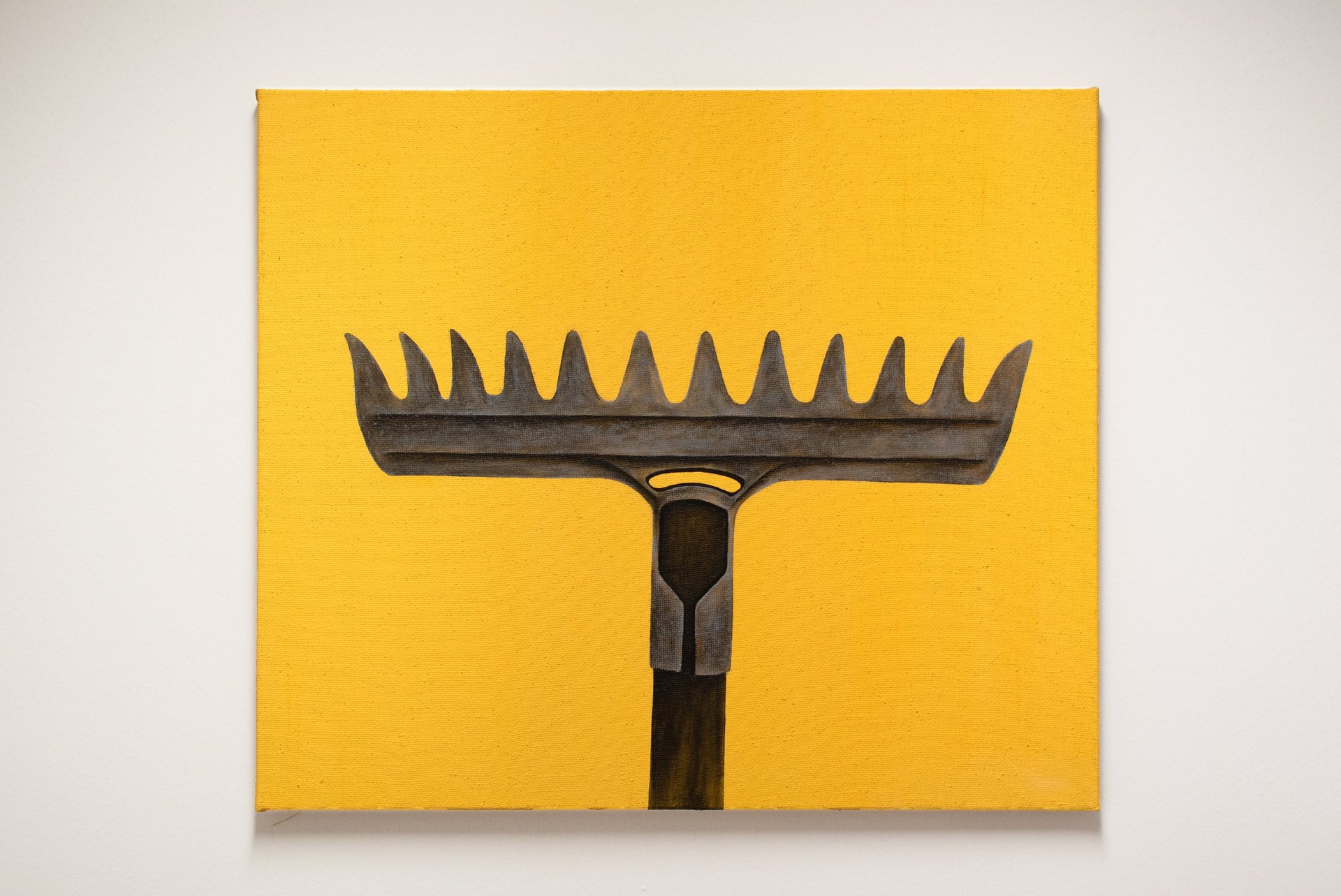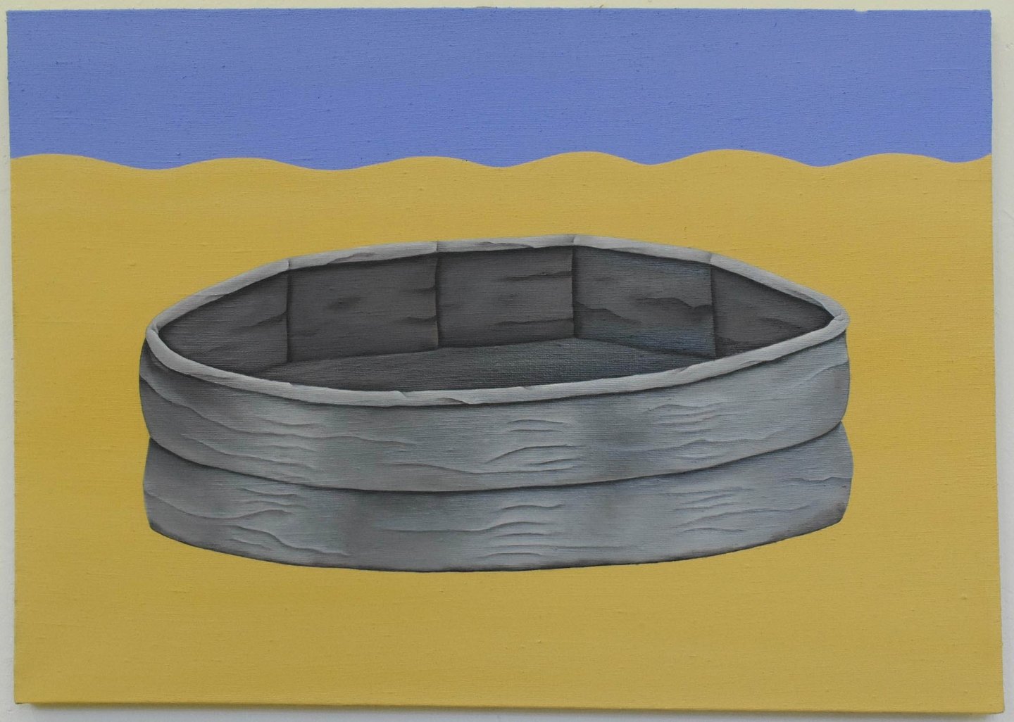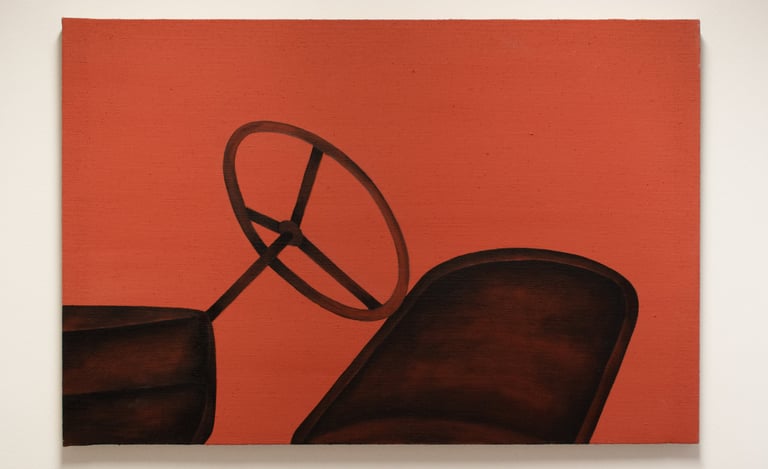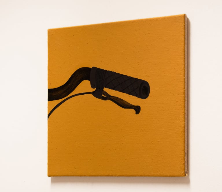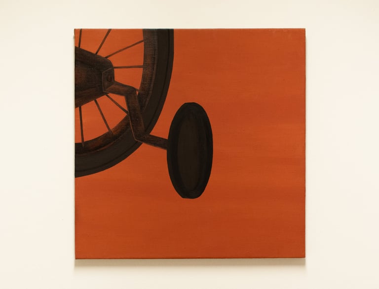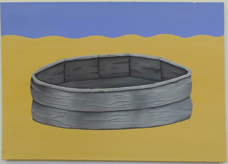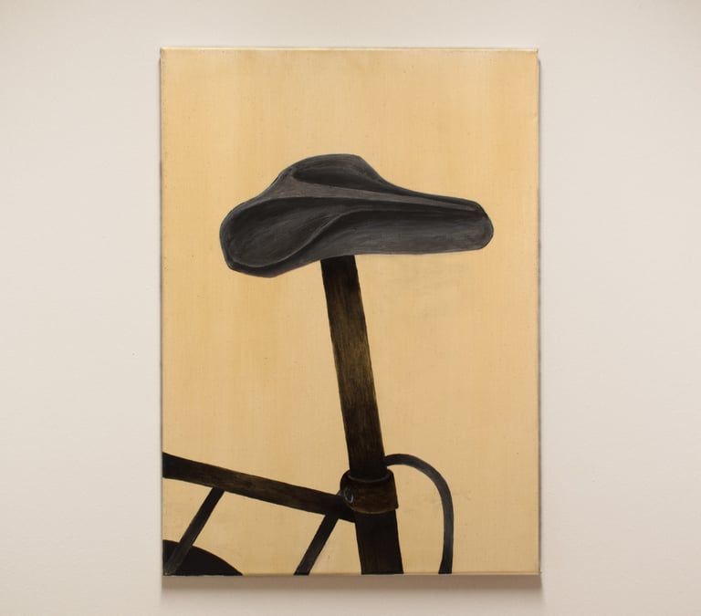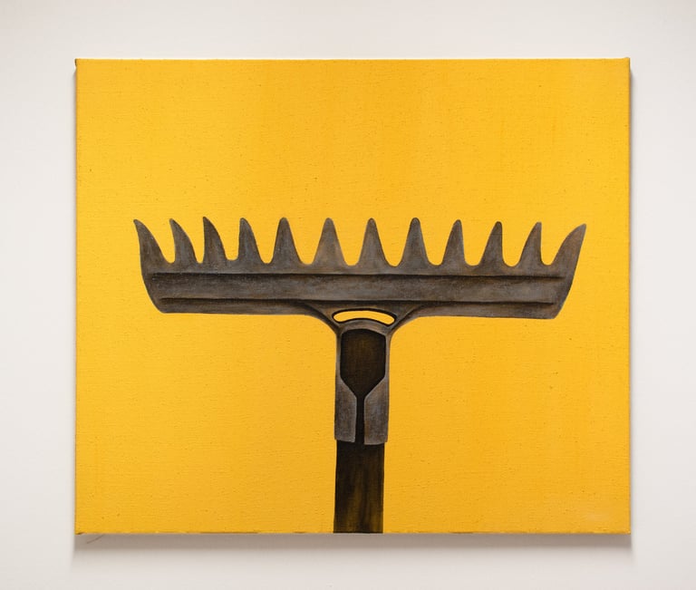 ‘Lo sguardo sugli oggetti’ si configura come un raccolto: un bastone, un pezzo di puzzle, un giocattolo sulla sabbia, una bicicletta, un’eco di campagna. Non sono elementi narrativi, ma unità visive autonome, frammenti che si affacciano sulla tela non per raccontare una storia, ma per guardarla. L’opera non mira alla rappresentazione del reale, ma alla sua trasformazione: l’oggetto perde la propria funzione originaria e si ricolloca nello spazio pittorico come materia affettiva, invenzione visiva.